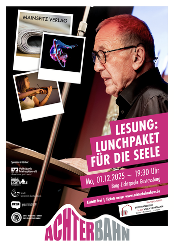 „Lunchpaket für die Seele“ – Dr. Peter A. Schult (Ginsheim) liest aus seinem neuen Buch, begleitet von Musik, Artistik und den Bildern von Klaus Friedrich. Ein Abend voller Zuversicht, Trost und Mut – geistiger Proviant für die Seele, wie Weihbischof Prof. Dr. Karlheinz Diez treffend sagt: „Eine vorbereitete Mahlzeit für unterwegs – nur eben für die Seele.“